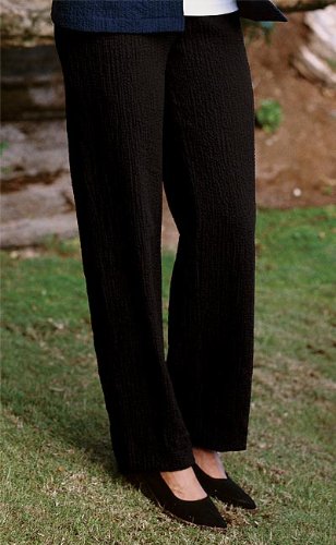 Scrunch Cloth performs brilliantly under pressure—it's lightweight, packs to almost nothing, washes and dries quickly, and will not wrinkle. Women's stretch waist, pull-on pants have two side pockets. Rayon/polyester/spandex. Washable. Imported.Sizes: S(6-8, M(10-12, L(14-16, XL(18-20; inseam about 31".