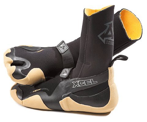 Xcel 3mm Drylock Split Toe Boots SIMA Hardgoods Accessory Product of the Year! Seamless Drylock ankle seals and a extra flexible, lightweight sole. All Drylock boots are 100% blindstitched, which means a more watertight construction since no stitching fully penetrates through the neoprene. ThermoCarbon lining and UltraStretch neoprene ankle panels. Velcro cinches across the insteps help provide a secure fit.
