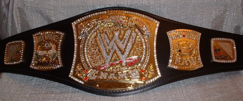 Now you can be the WWE Champion for an unbeatable price! The first ever WWE Spinning Championship Commemorative Belt is now available from Figures Toy Company! This commemorative belt was molded from the original, and measures 4 feet 7 inches long. Being the first of its kind, our championship commemorative belt plates are manufactured from a high quality acrylic plastic and have the same dimensions of the WWE Championship belt that you see on TV. The difference between this commemorative belt and our replica belt is that our replica belt plates are crafted from metal, while our commemorative belts are composed of plastic. This commemorative championship belt is highly detailed, featuring over 3000 faux diamonds and a three dimensional spinning WWE logo center plate, as well as a removable nameplate. The Strap is made of our new and improved simulated leather and fits up to a 46 inch waist. The commemorative belt has all the features of our replica belts at a fraction of the cost! Many WWE Superstars have held this title belt, including John Cena, Randy Orton and Edge. Now it is your turn! This belt comes packaged in a sealed box and is the perfect gift for any wrestling fan ages 8 and older. Order today!