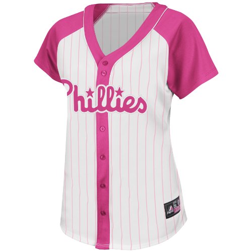 Price for MLB Women's Philadelphia Phillies Short Sleeve 5 Button Synthetic Replica Baseball Jersey (White & Pink Splash Pinstripes/Pink Splash, Large) With Special Pomotions & eligible for FREE Super Saver Shipping